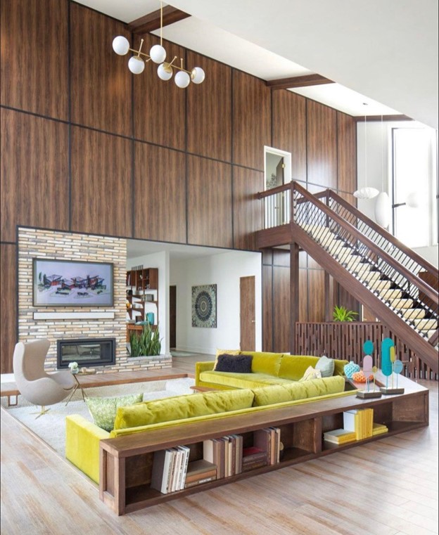 - The 50s and 60s’ iconic sculptures, geometric patterns, and vibrant colours also appear in this interior design theme.